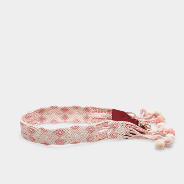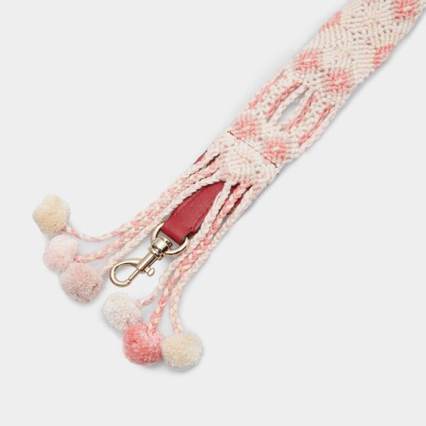 Bandolera confeccionada en algodón con bordados multicolor y extremos en piel a contraste.Mosquetones con acabado oro chiaro y detalle de pompones.