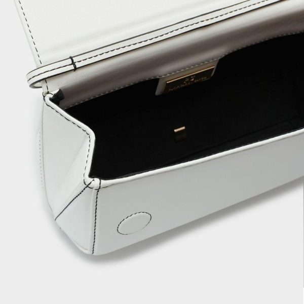 Bolso pequeño en piel de napa con diseño Origami. Asa de tres posiciones: bandolera, hombro y clutch. Detalle de pespuntes y lujados a contraste. Cierre de imán oculto e interior con forro completo.