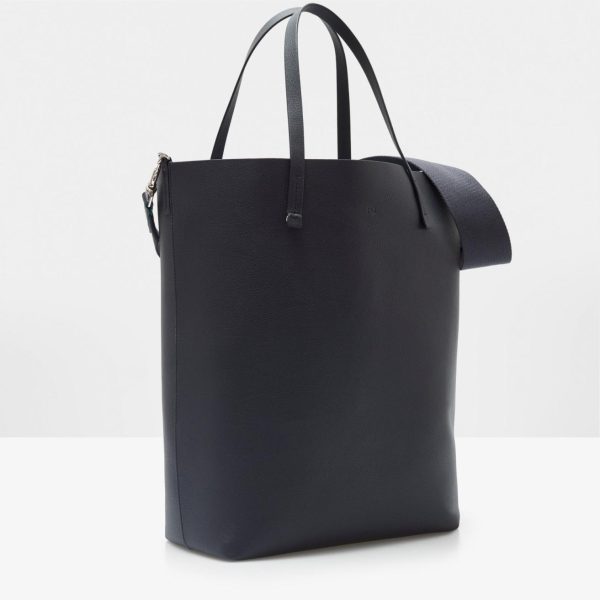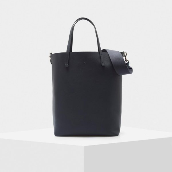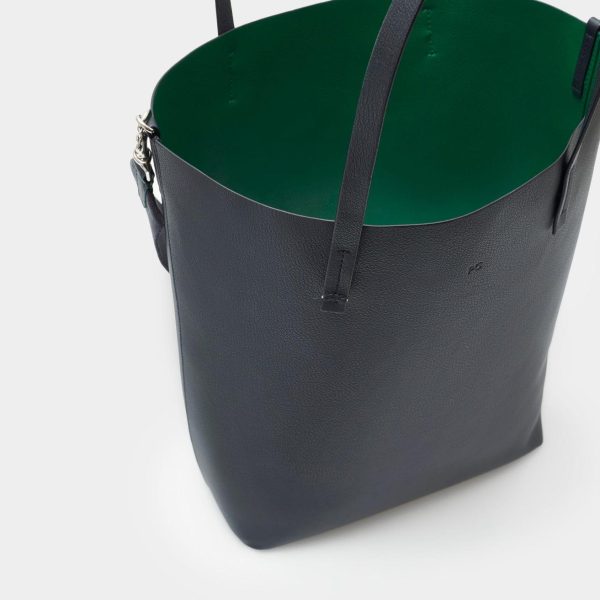 Bolso de hombro elaborado en piel de vacuno con dos asas de piel y una cinta de grosgrain extraíble con mosquetones. Interior en piel contrastada.