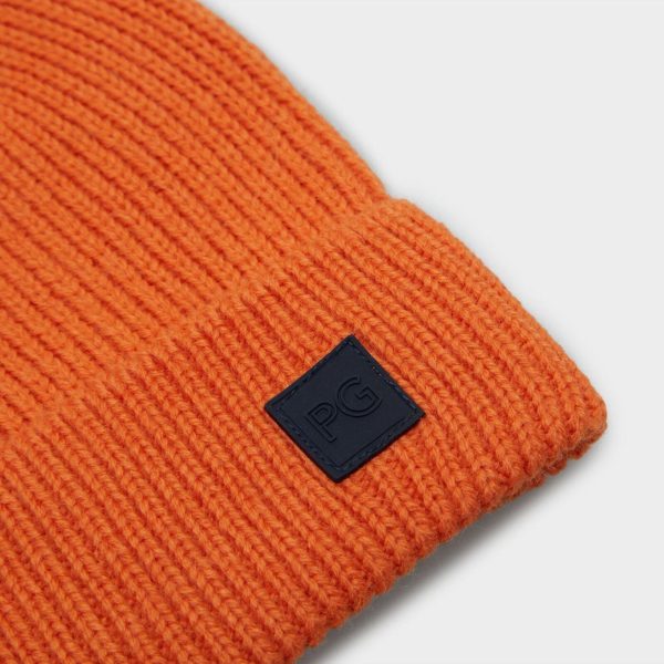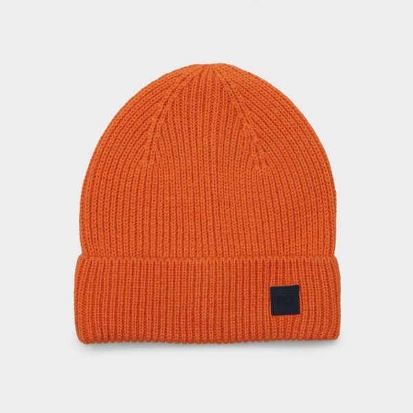 Gorro en punto canalé de mezcla lana con vuelta y detalle de cubo PG a contraste.