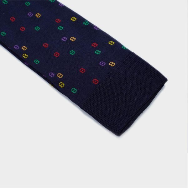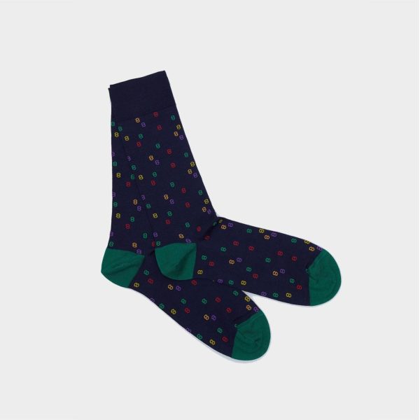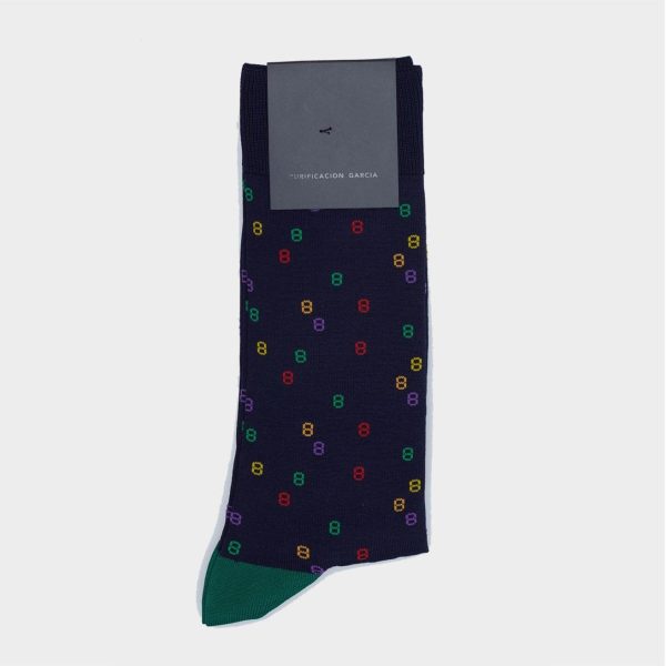 Calcetín en algodón con estampado de ochos multicolor y punteras a contraste.