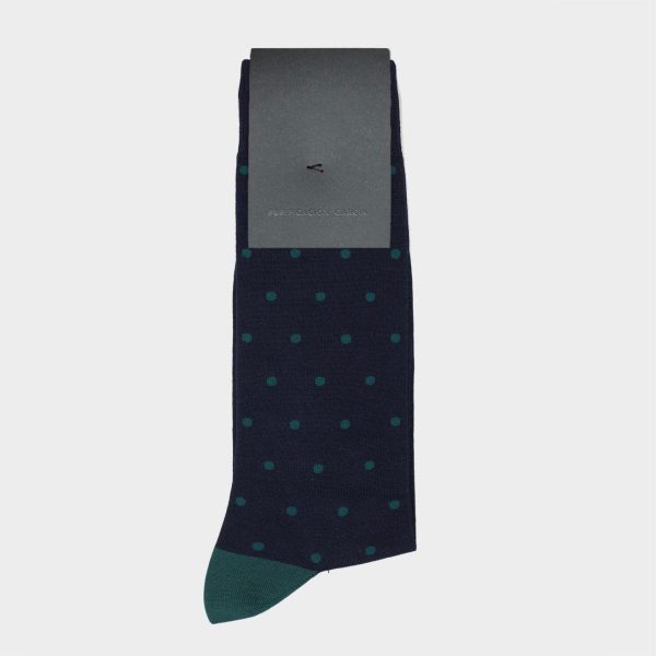 Calcetín en algodón con estampado de topos y punteras a contraste.