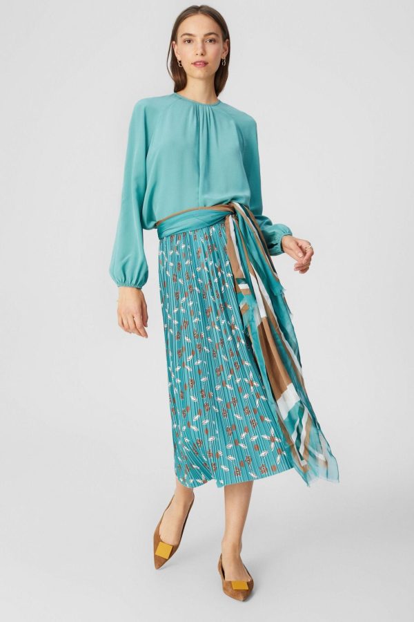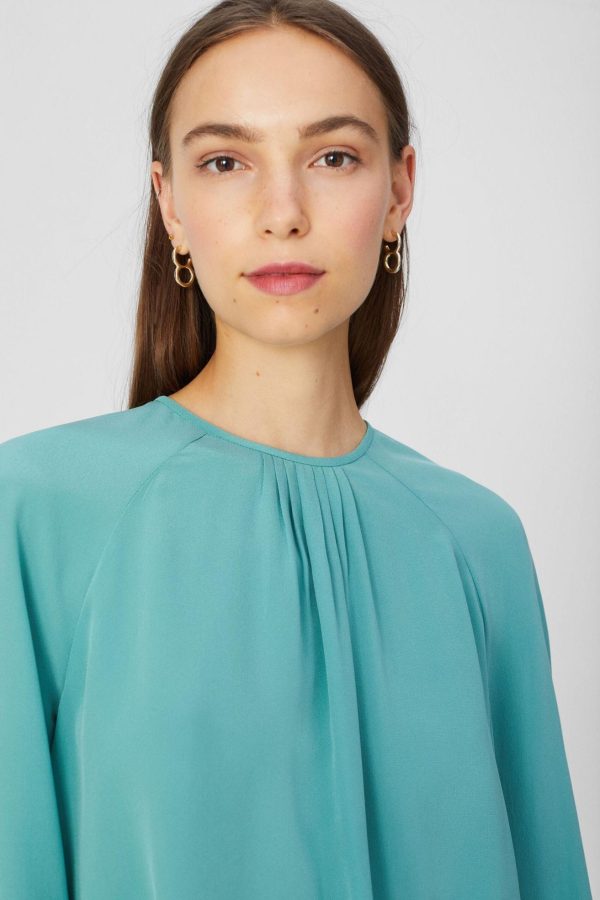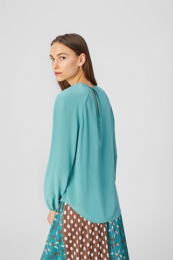Purificación García Camisas | Blusa Seda Fruncida Azul Turquesa Mujer
