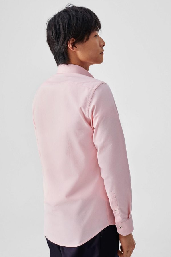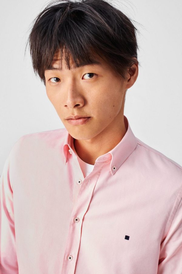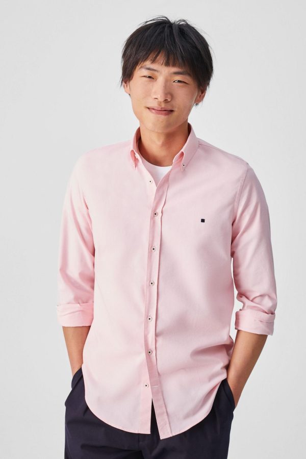 Camisa regular fit en oxford de algodón liso. Cuello abotonado, puño simple y logo de cubo bordado a la altura del pecho. El modelo mide 1.88 m y lleva una talla 3.