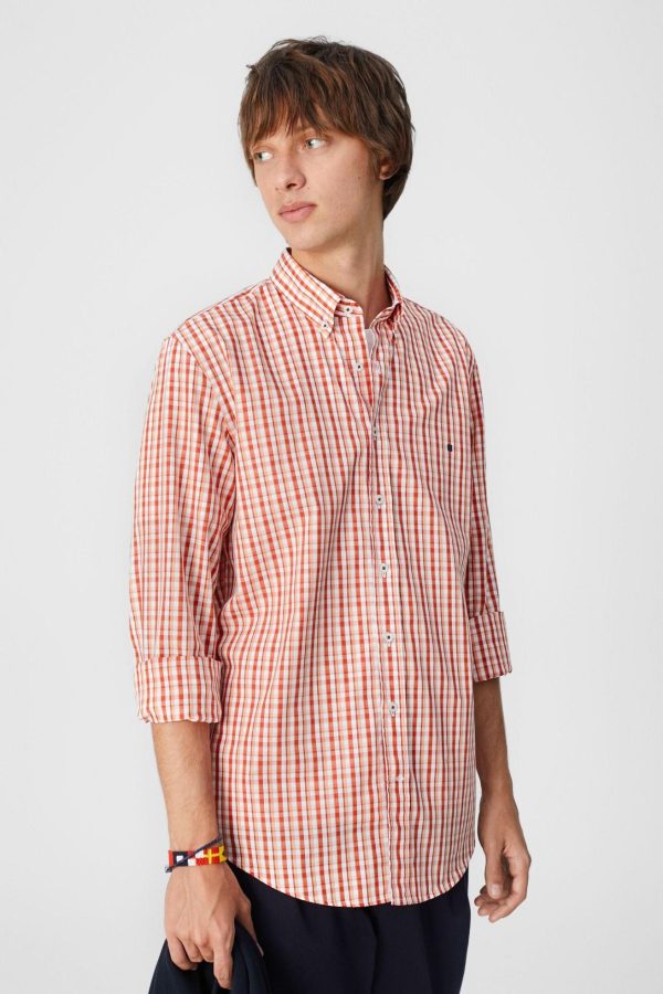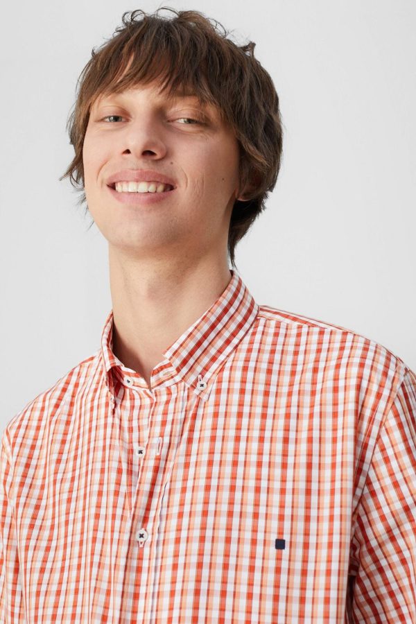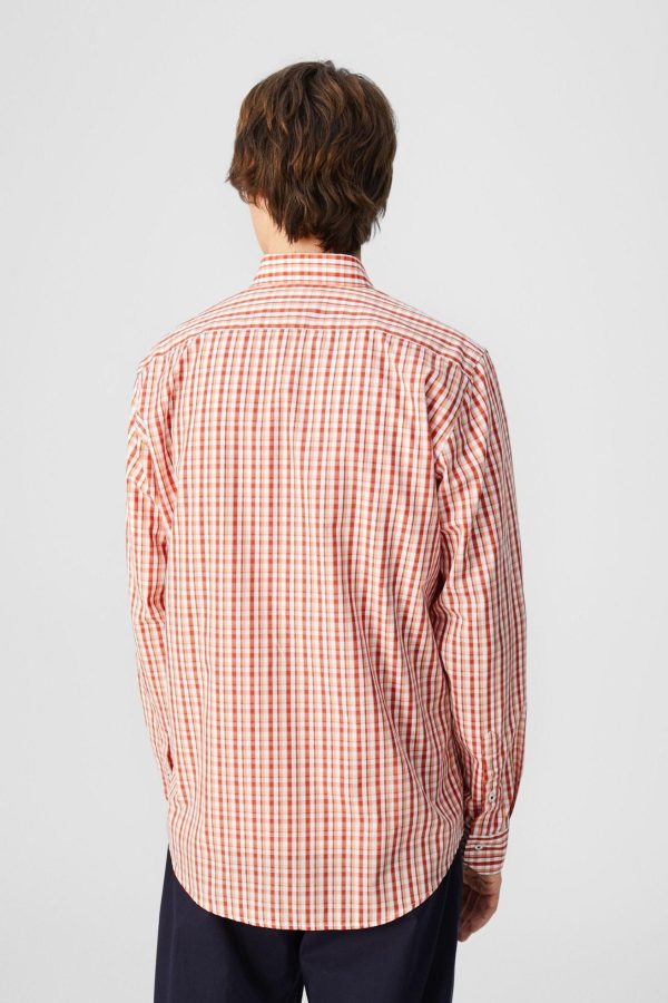 Camisa regular fit en popelín de algodón con estampado de cuadro pequeño. Cuello abotonado, puño simple y detalle de cubo PG bordado en el bajo. El modelo mide 188 cm y lleva una talla 4.