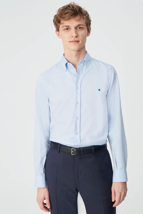 Purificación García Camisas | Camisa Popelín Raya Candela Grosgrain Azul Celeste/blanco Hombre