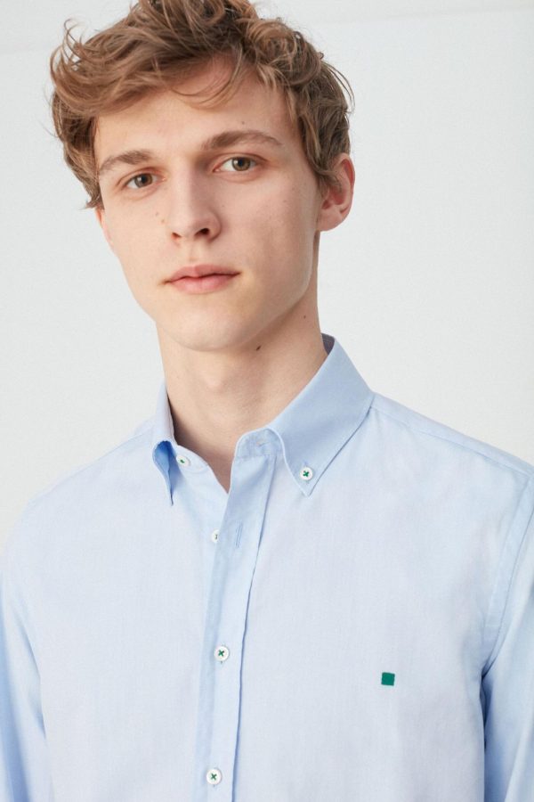 Camisa regular fit en popelín liso de algodón. Cuello abotonado, puño simple y detalle de cubo PG bordado a la altura del pecho. El modelo mide 187 cm y lleva una talla 3.
