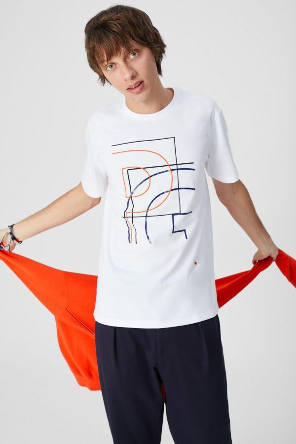 Purificación García Camisetas | Camiseta Estampada Colorblock Azul Marino/naranja/blanco Hombre