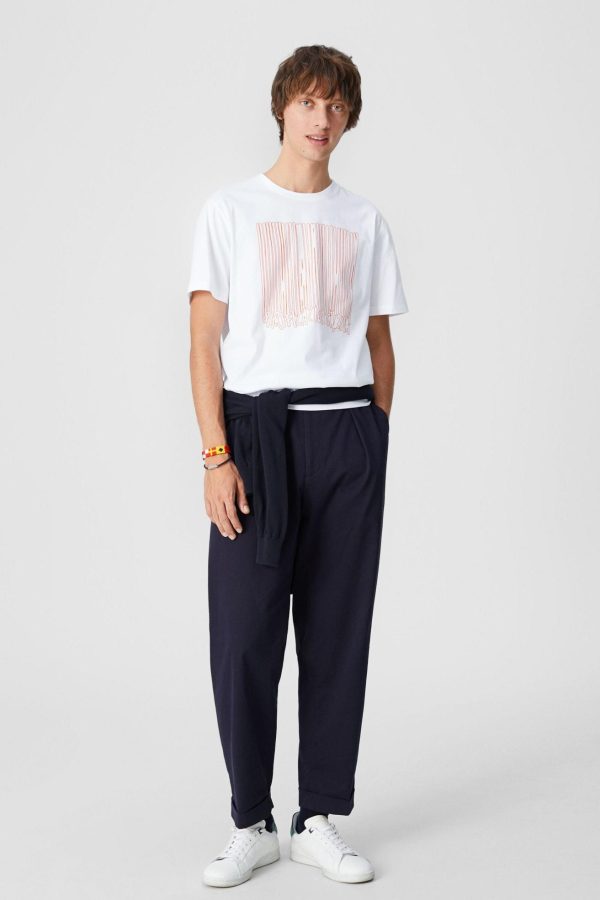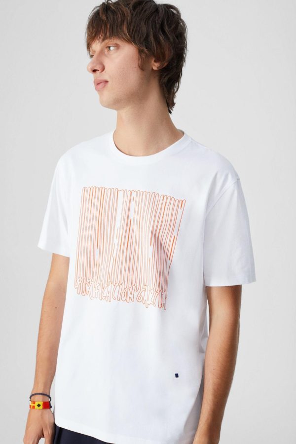 Camiseta regular fit en algodón con estampado Purificación García. Tapacosturas a tono en el interior del cuello y detalle de cubo PG bordado en el bajo. El modelo mide 188 cm y lleva una talla M.