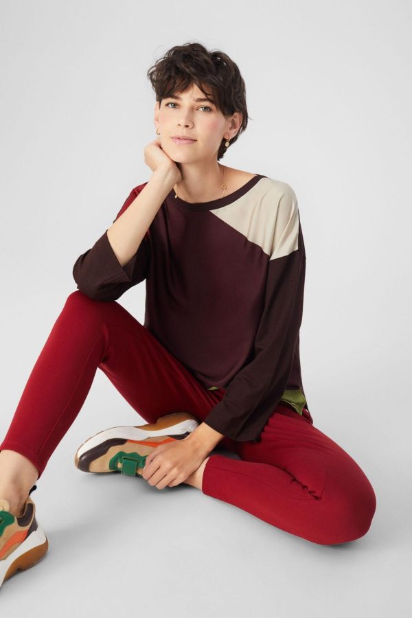 Camiseta recta en twill con estampado geométrico y espalda en tejido liso. Cuello redondo y manga larga. La modelo mide 179 cm y lleva una talla S.