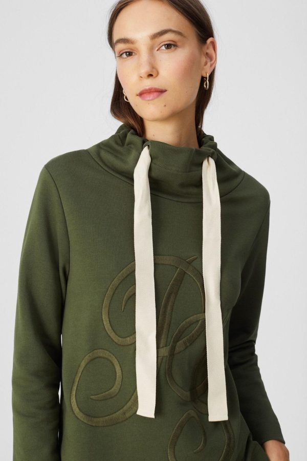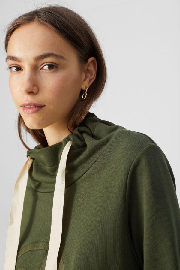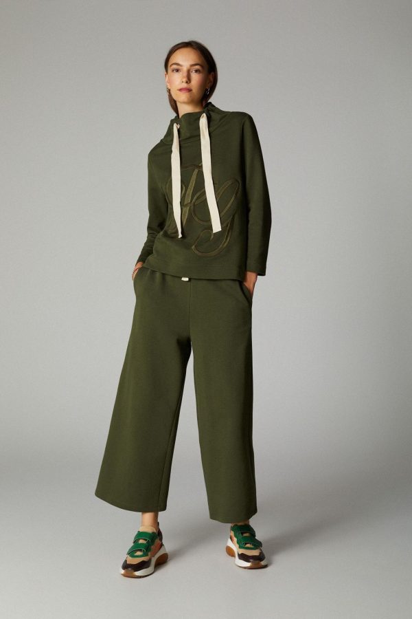 Sudadera recta en felpa stretch con bordado de PG a tono. Cuello chimenea con fruncidores. Tiene pantalón a conjunto. La modelo mide 180 cm y lleva una talla M.