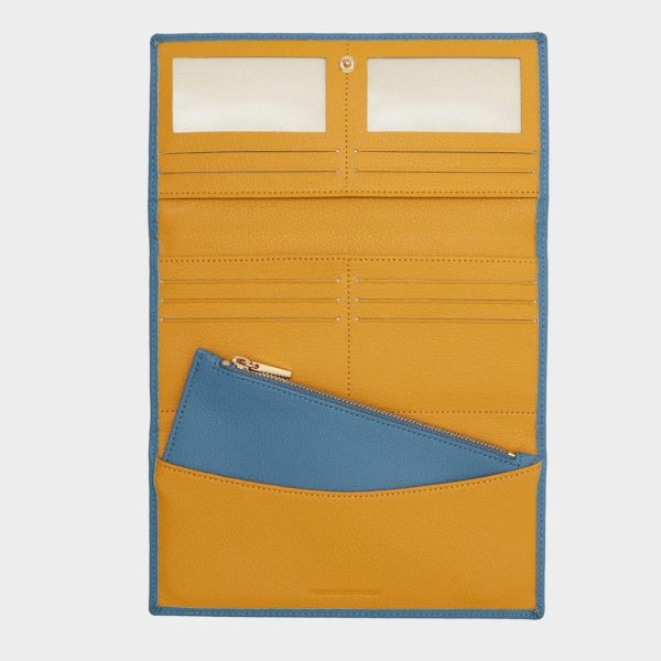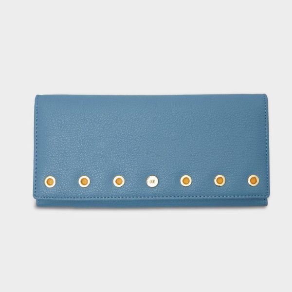 Cartera americana en piel con detalle de ollados metálicos . Interior con monedero extraíble, dos compartimentos para billetes y 10 ranuras para tarjetas.