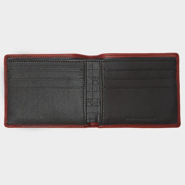 Cartera apaisada en piel con logo PG a tono. Interior a contraste con detalle Stamp de cubos PG. Doble billetera y 6 ranuras bicolor para tarjetas.