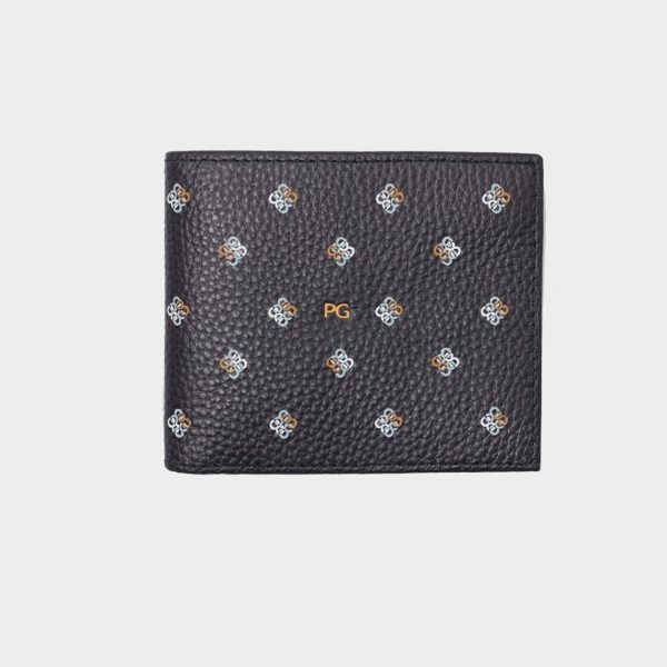 Cartera apaisada en piel Quinoa con estampado de ochos y logo PG. Interior con doble billetera y 6 ranuras para tarjetas.