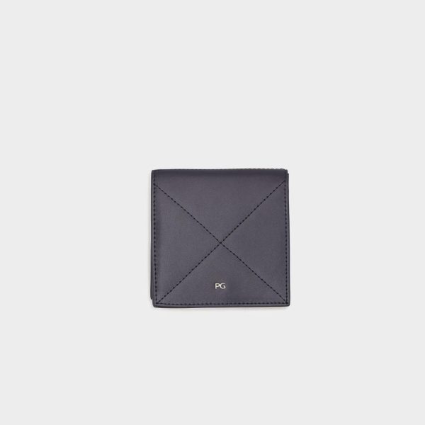 Cartera apaisada en piel con diseño Origami y logo PG grabado. Interior bicolor con billetera simple y 4 compartimentos para tarjetas.