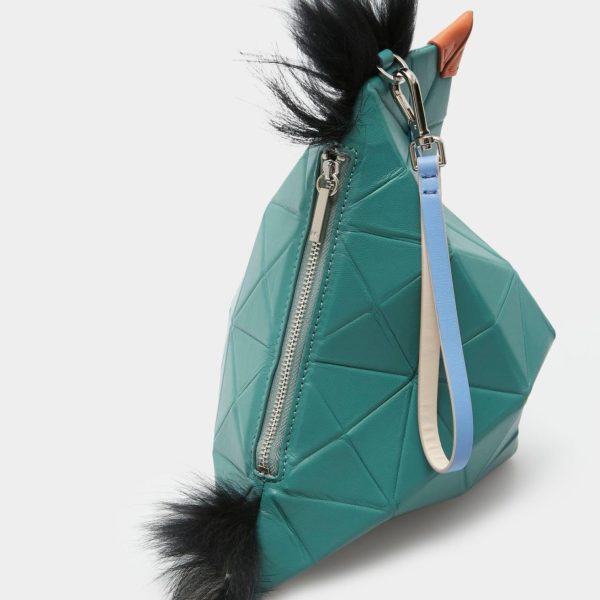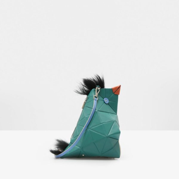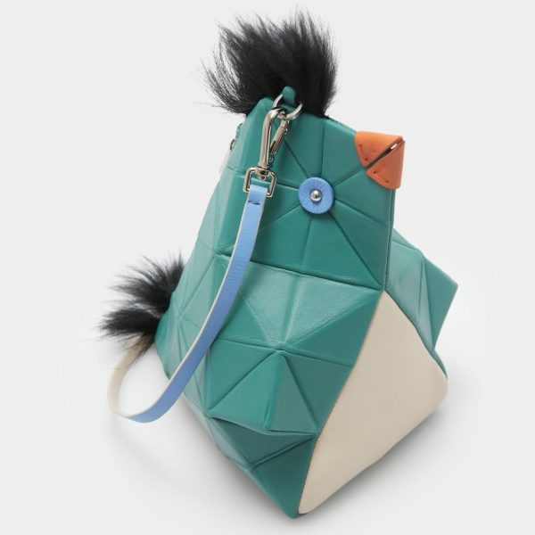 Bolso de hombro en piel con un diseño de fantasía origami Pingüino. Tiene un asa de hombro extraíble con mosquetón.