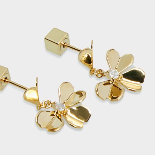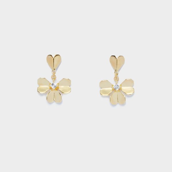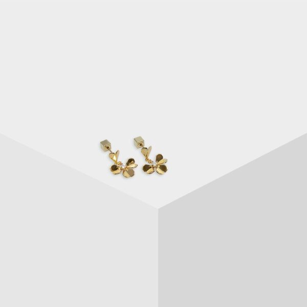 Pendientes bañados en oro con diseño de trébol origami y detalle de cristal incrustado. Cierre de tuerca a presión personalizada.