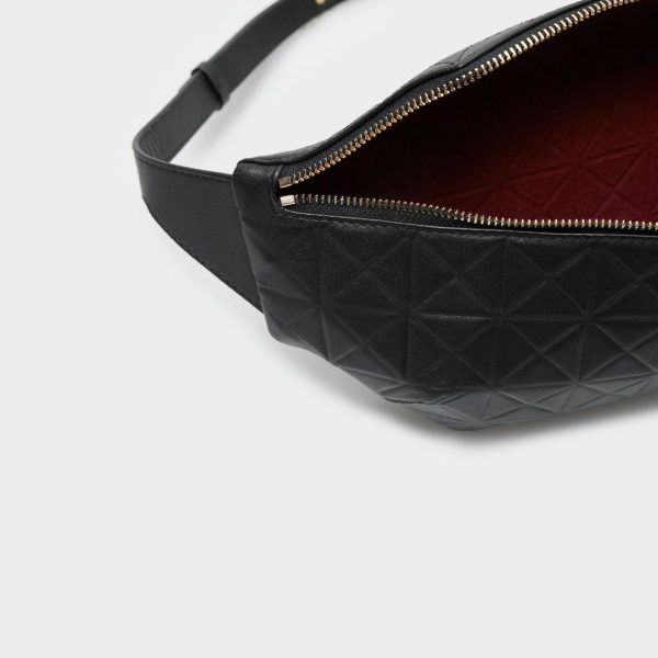 Riñonera en piel napa con diseño Origami. Cierre de cremallera y cinturón ajustable. Forro interior en algodón.