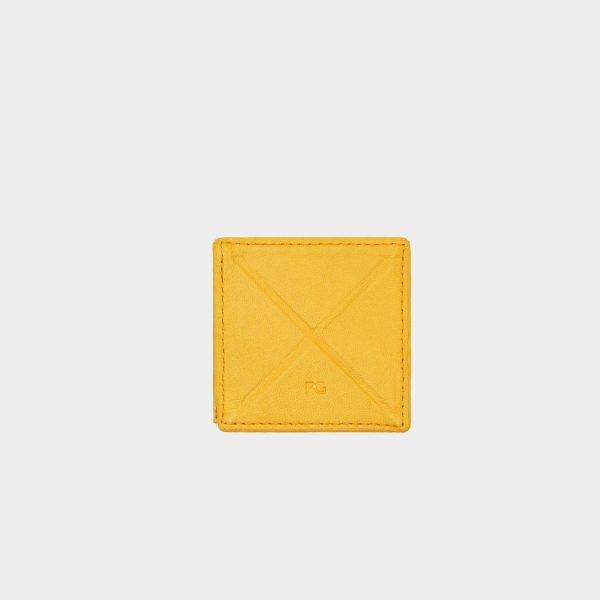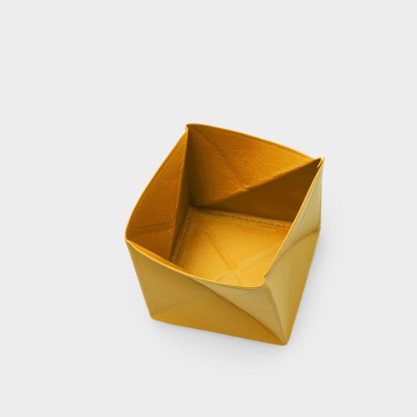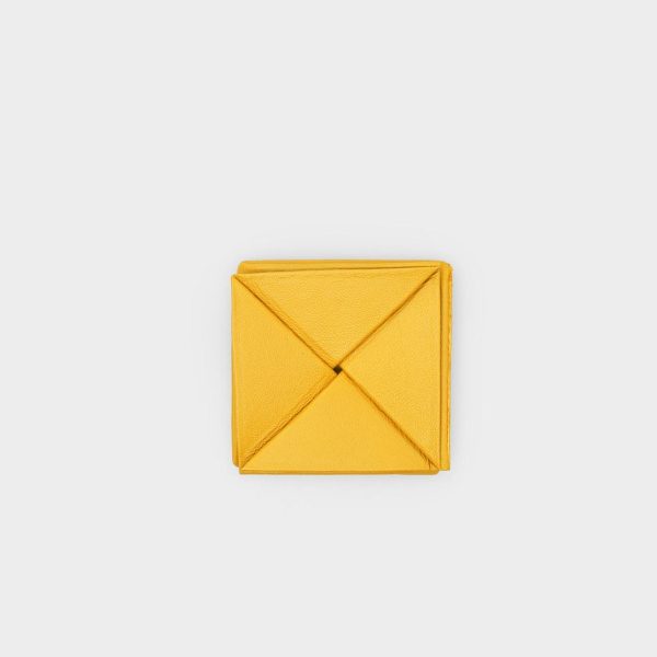 Monedero en piel con diseño de cubo Origami. Cierre con formato de pliegue geométrico.