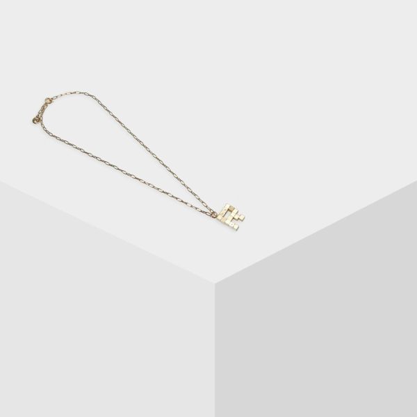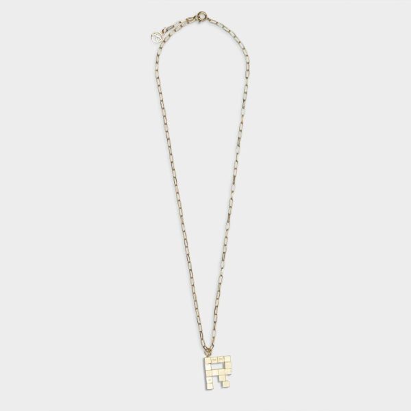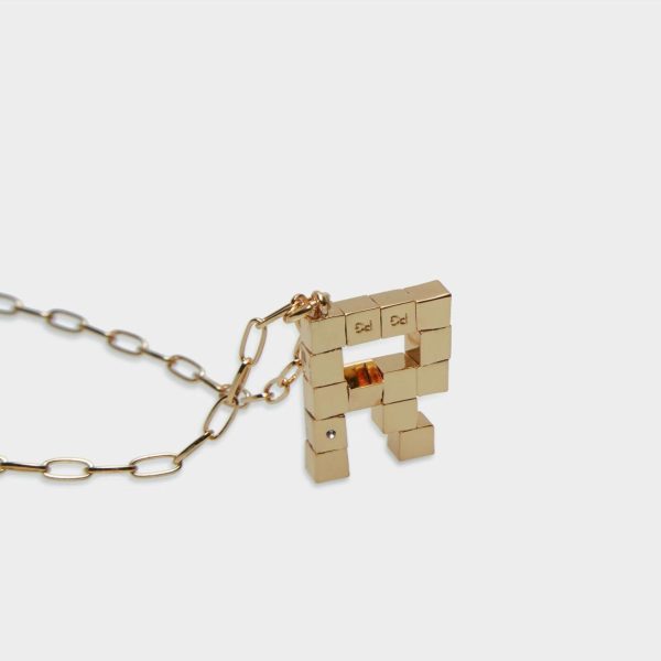Collar bañado en oro con colgante de letra R formado por cubos y con detalle de circonita. Cierre ajustable de mosquetón.