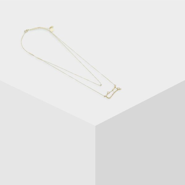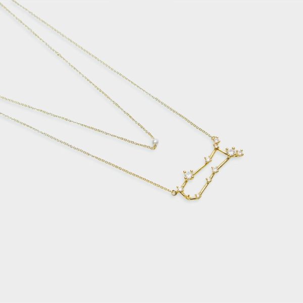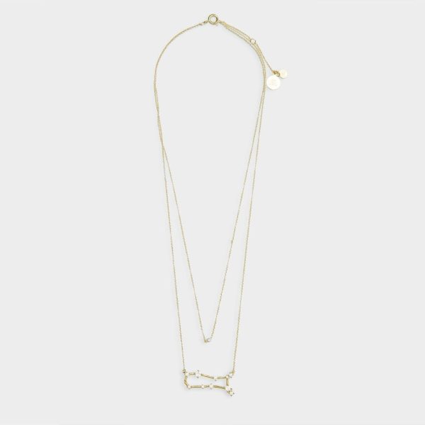 Collar fino doble bañado en oro con colgante de la constelación de Géminis e incrustación de cristales. Cierre ajustable con mosquetón.