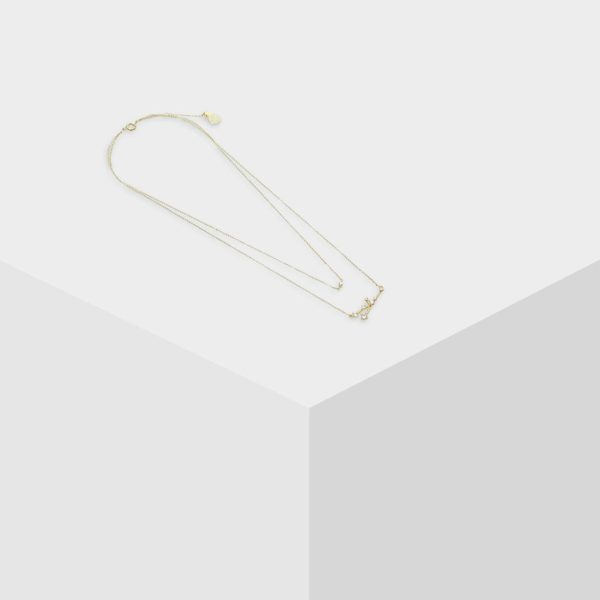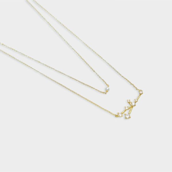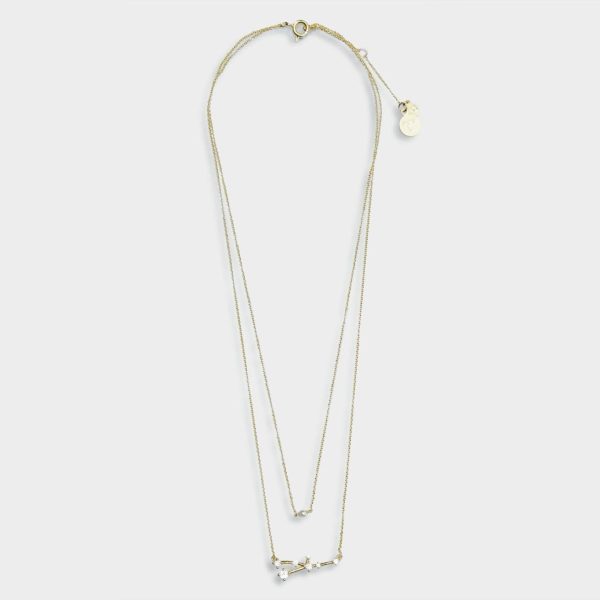 Collar fino doble bañado en oro con colgante de la constelación de Tauro e incrustación de cristales. Cierre ajustable con mosquetón.