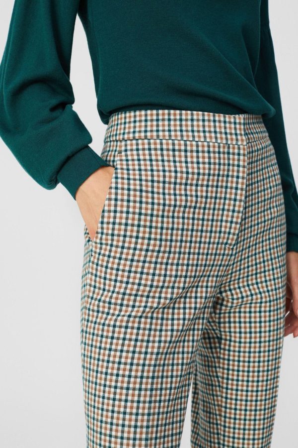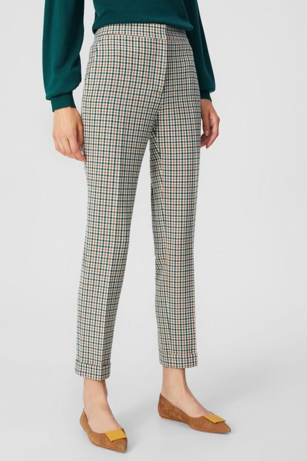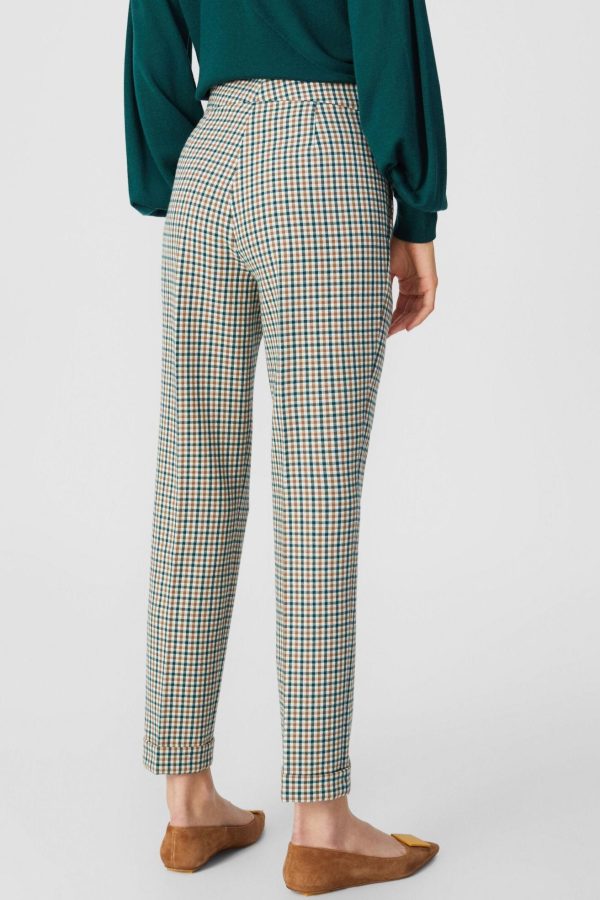 Pantalón pitillo en doble tela con estampado de cuadros. Bolsillo francés, dobladillo en el bajo y cierre oculto. Tiene chaqueta a conjunto. La modelo mide 180 cm y lleva una talla 36.