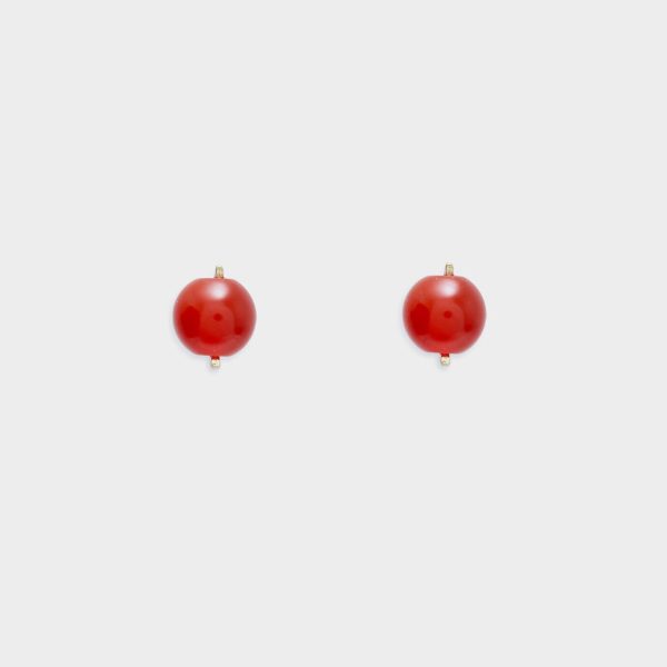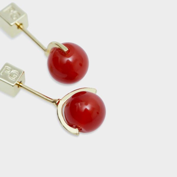 Pendientes bañados en oro con piedra cornalina engarzada. Cierre con tuerca a presión en forma de cubo.