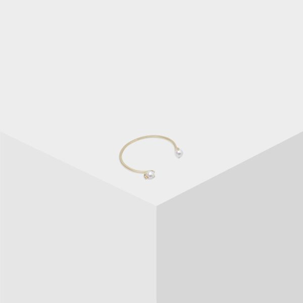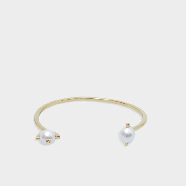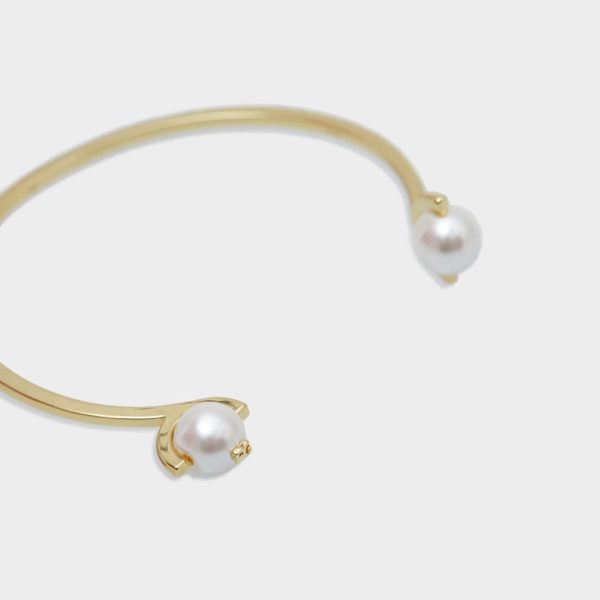 Pulsera rígida bañada en oro con colgante de perla de crista con logo PG.