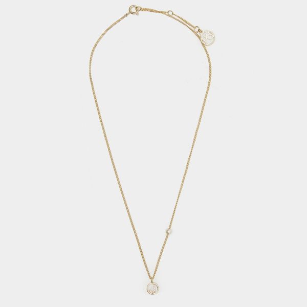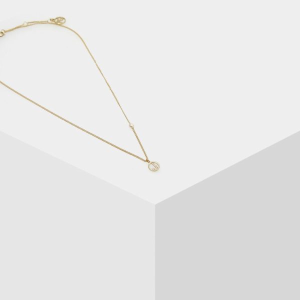 Collar fino bañado en oro con detalle de perla y colgante con letra J con incrustación de cristales.