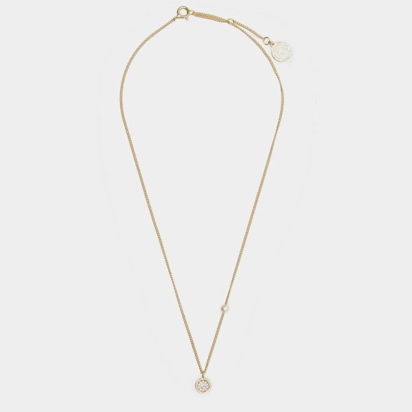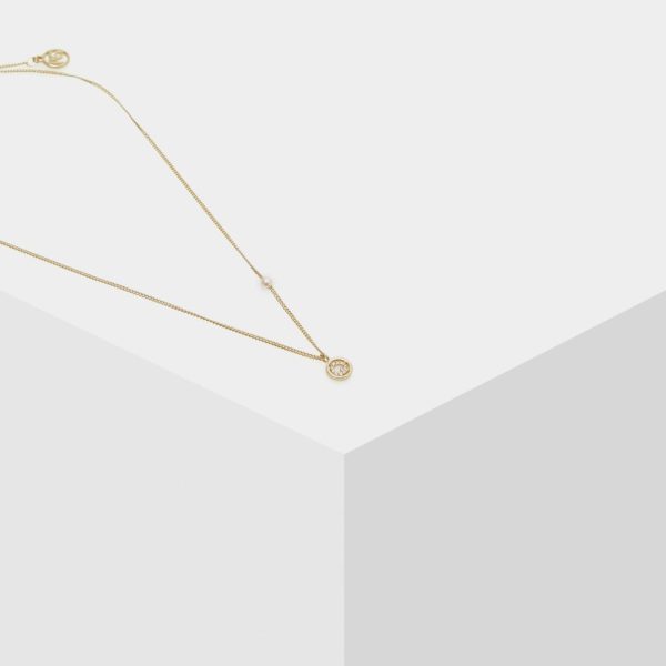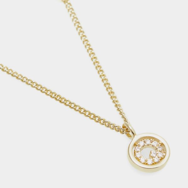 Collar fino bañado en oro con detalle de perla y colgante con letra Q con incrustación de cristales.
