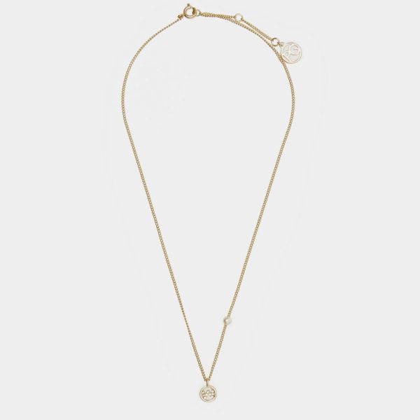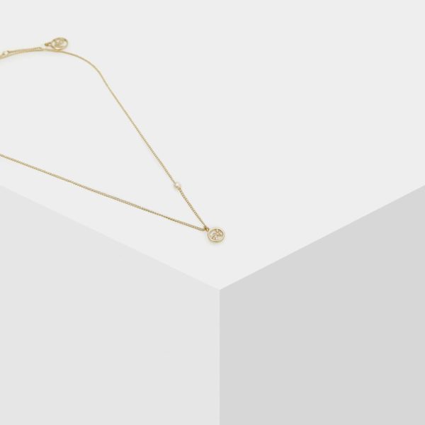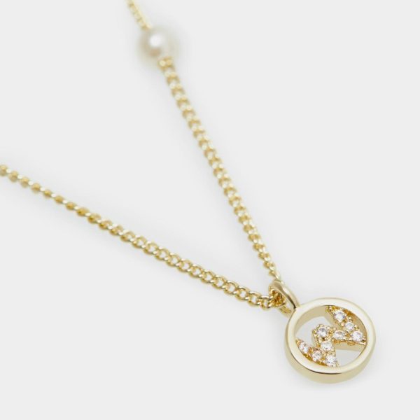 Collar fino bañado en oro con detalle de perla y colgante con letra W con incrustación de cristales.
