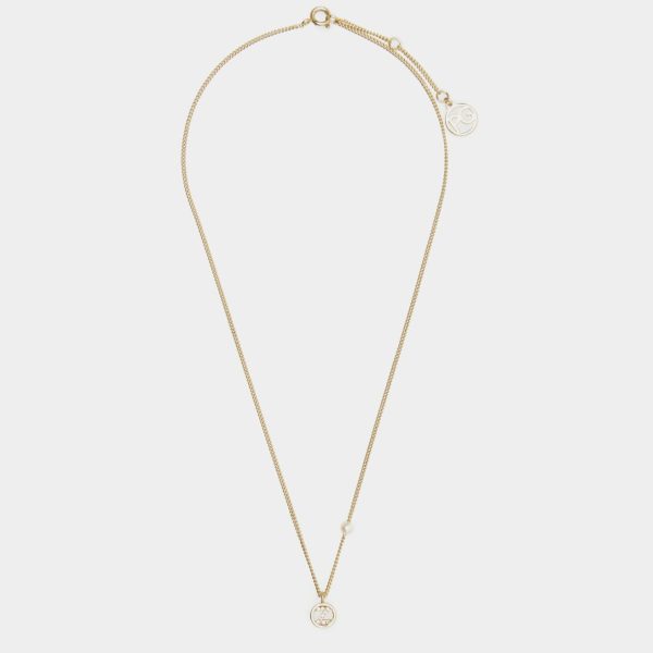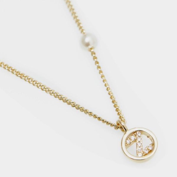 Collar fino bañado en oro con detalle de perla y colgante con letra Z con incrustación de cristales.