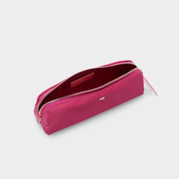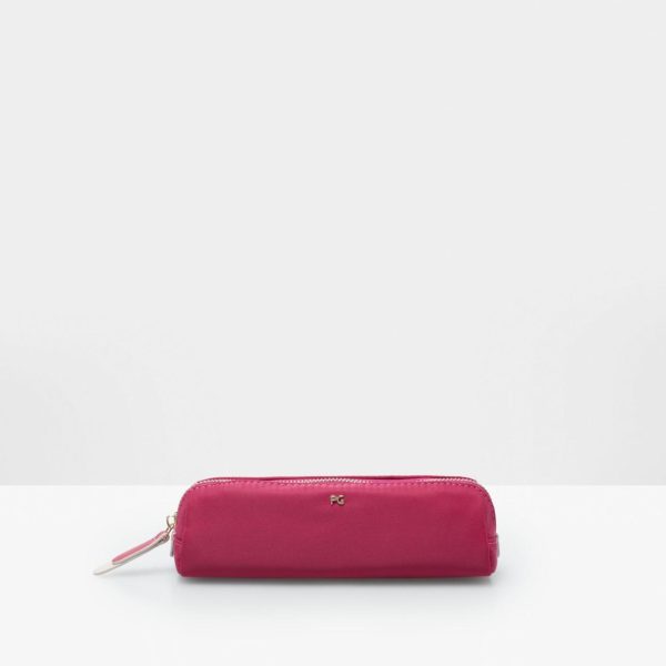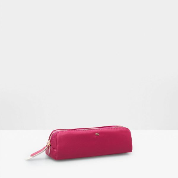 Estuche en nylon liso con metálicas PG. Cierre de cremallera con tirador de piel.
