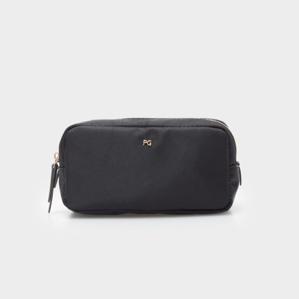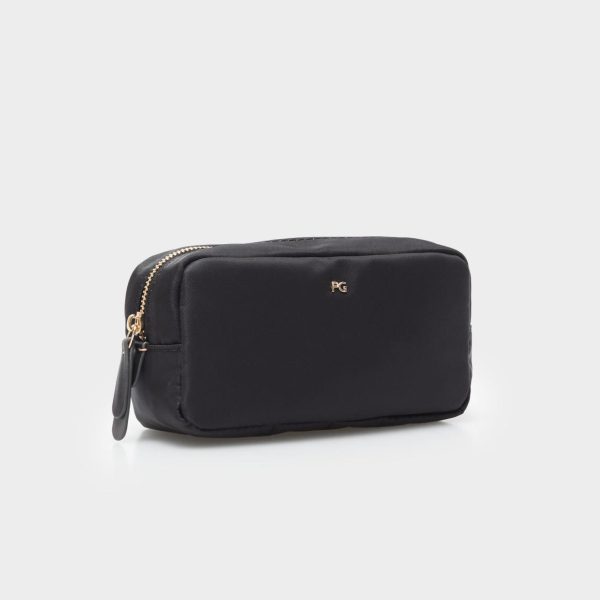 Neceser pequeño en nylon liso con metálicas PG. Cierre de cremallera con tirador en piel a tono.