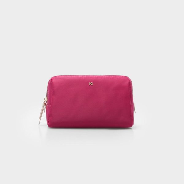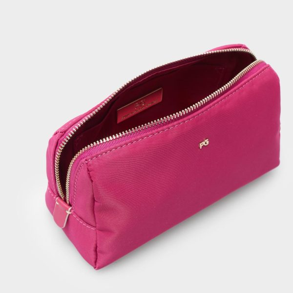 Neceser mediano en nylon liso con metálicas PG. Cierre de cremallera con tirador de piel.