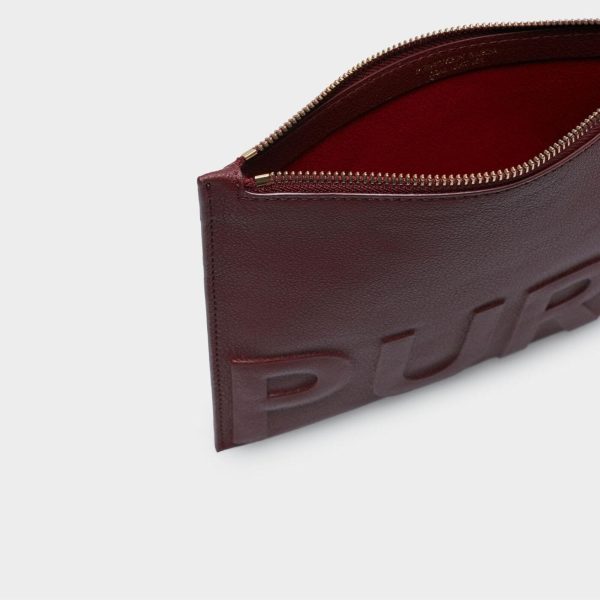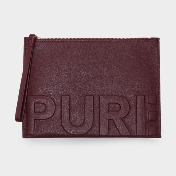 Pouch grande en piel doble faz lisa con Pop PURE. Cierre de cremallera con tirador en piel. Lujados a tono e interior sin forro.