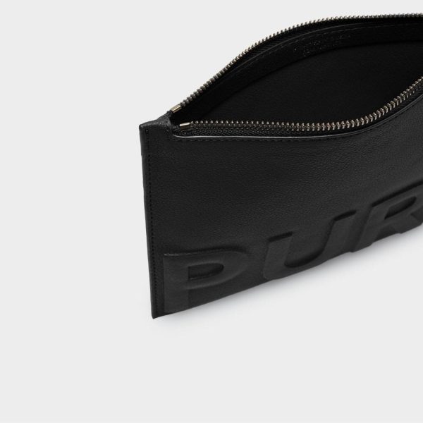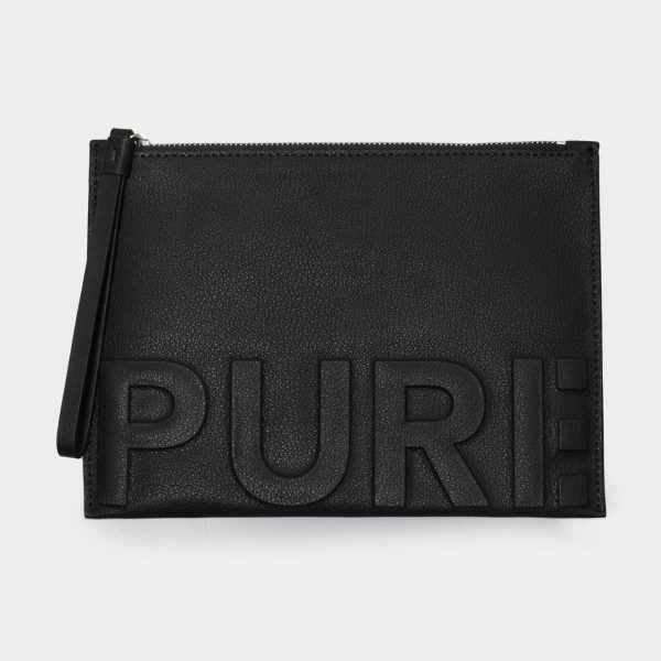 Pouch grande en piel doble faz lisa con Pop PURE. Cierre de cremallera con tirador en piel. Lujados a tono e interior sin forro.
