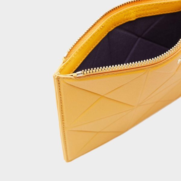 Pouch en piel de napa con diseño Origami y metálicas de logo PG. Cierre de cremallera e interior con forro completo.