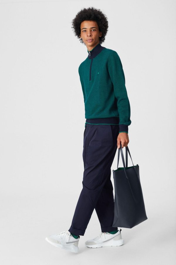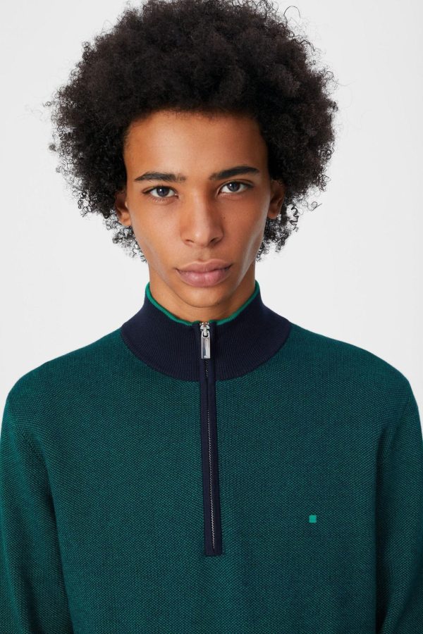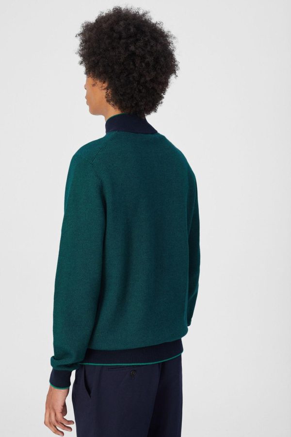 Jersey regular fit en punto estructurado de algodón con contraste en interior de cuello, puño y bajo. Detalle de cubo PG bordado en el pecho. El modelo mide 184 cm y lleva una talla M.