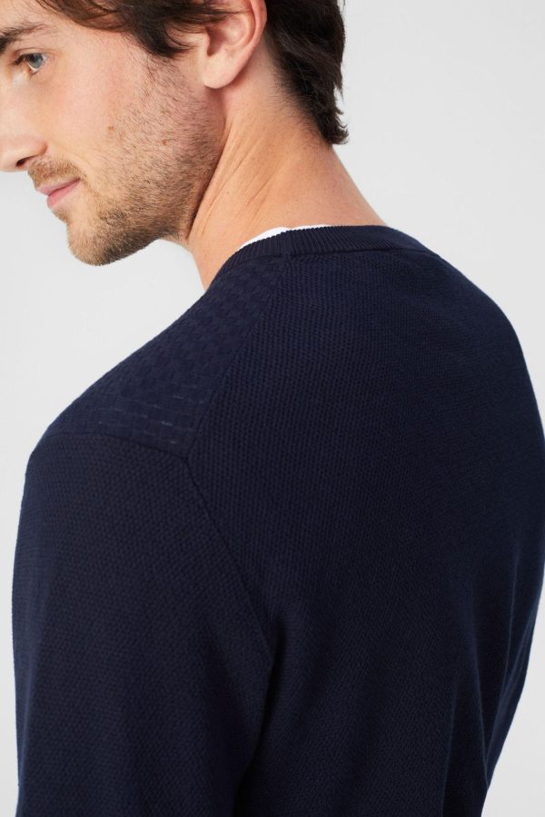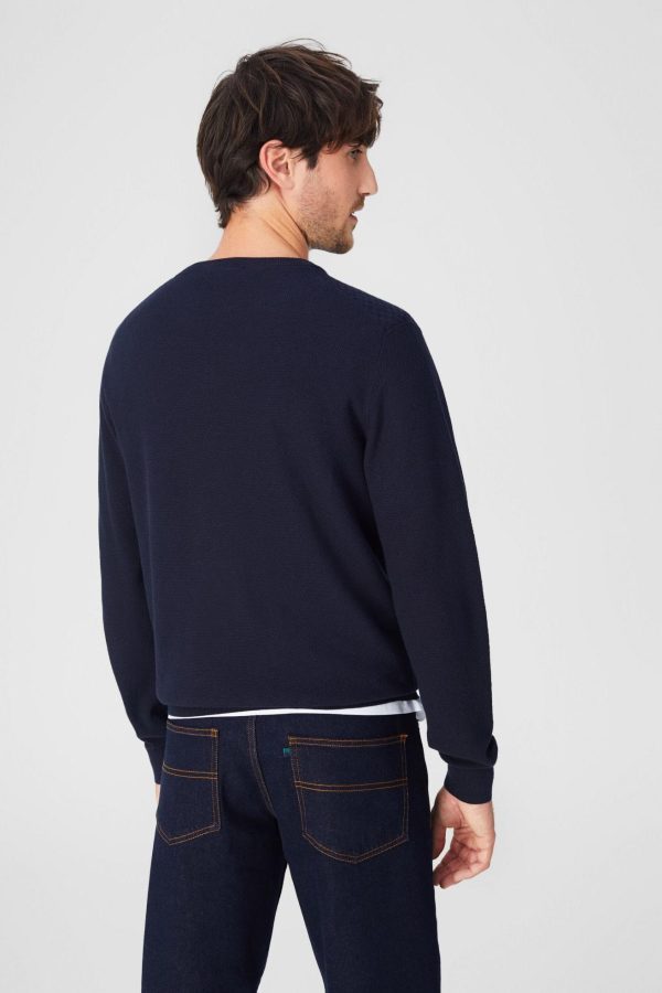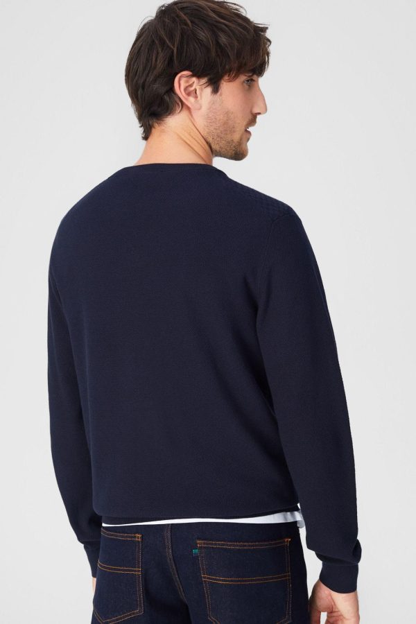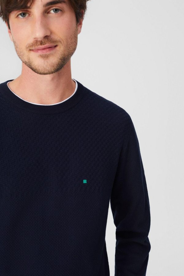 Jersey regular fit en punto de algodón estructurado con distintas texturas. Cuello redondo con interior a contraste. Detalle de cubo PG bordado en el pecho. El modelo mide 187 cm y lleva una talla M.