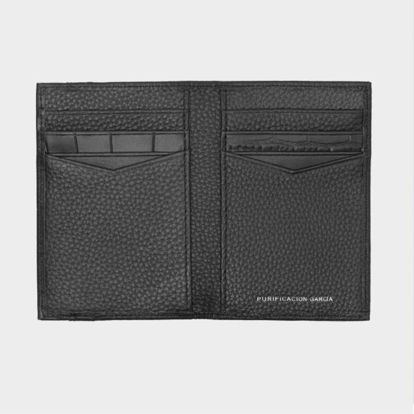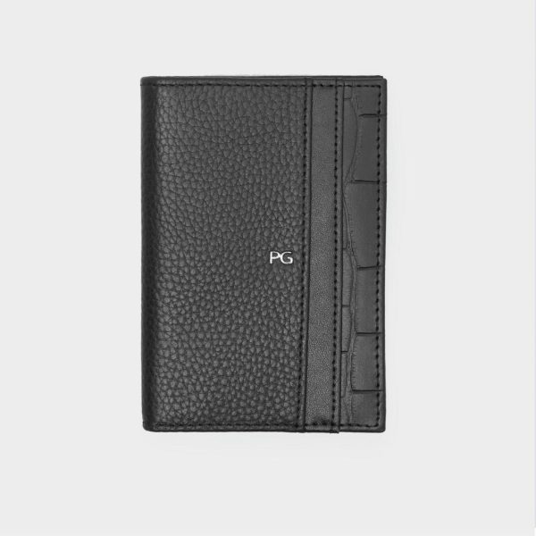 Organizador en patchwork de piel con logo PG. Interior con 8 ranuras para tarjetas y dos compartimentos para billetes.