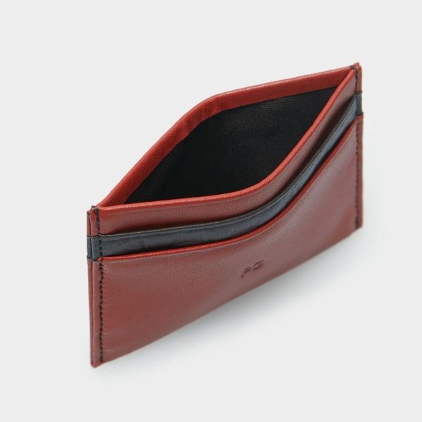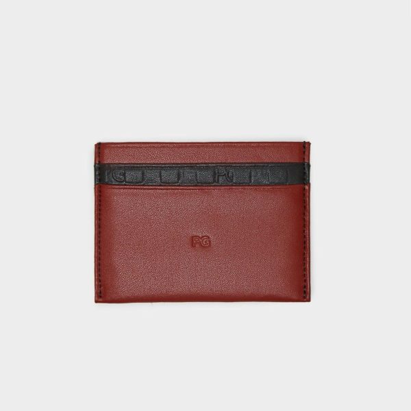Tarjetero en piel con detalle de contraste y grabado de Stamp de cubos PG. Cuatro ranuras para tarjetas y compartimento central.