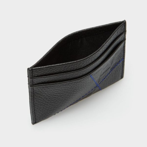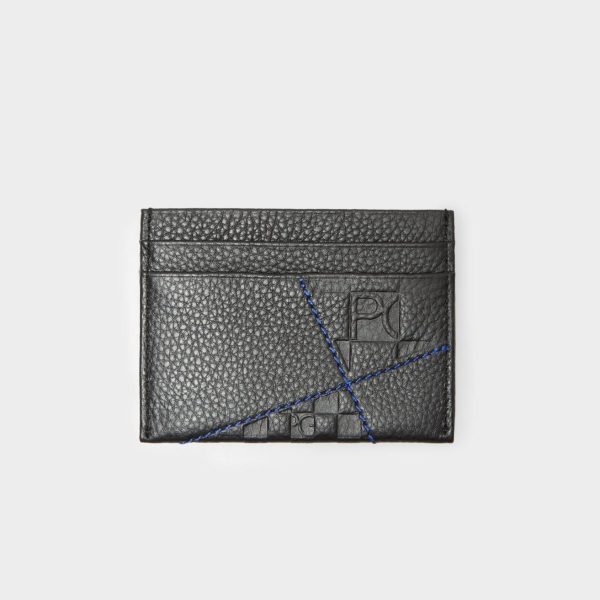 Tarjetero en piel Quinoa combinada con grabado de cubos y logos PG. Dos ranuras para tarjetas y compartimento central.