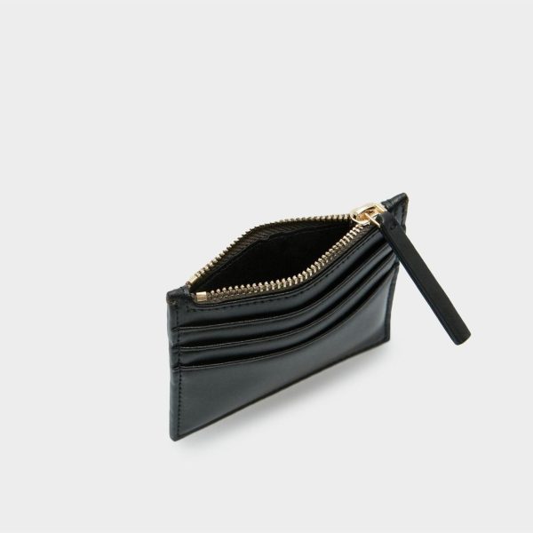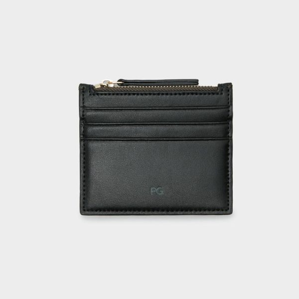 Tarjetero con monedero en piel con logo PG grabado a contraste. Cierre de cremallera y 6 ranuras para tarjetas.