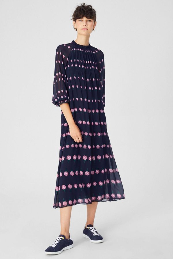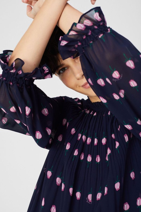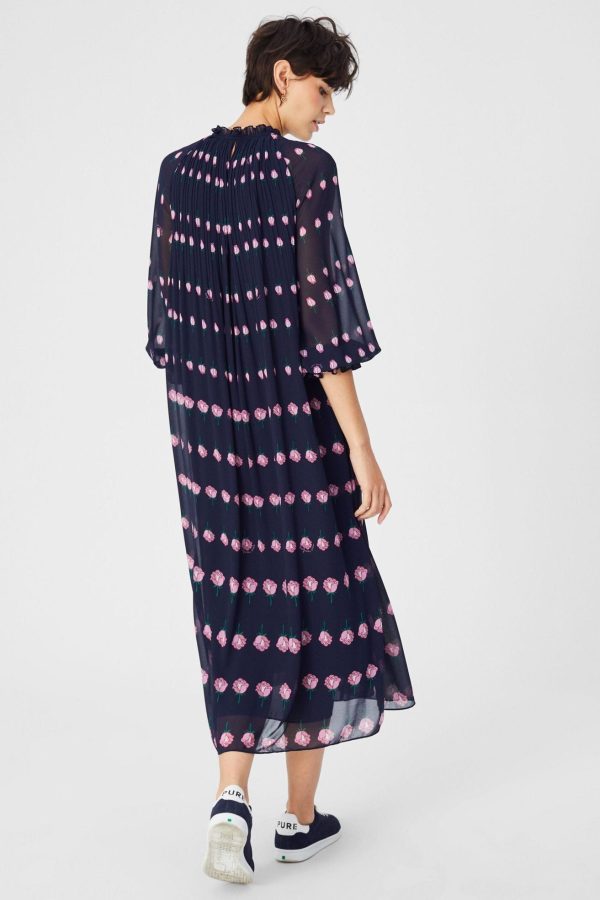 Purificación García Vestidos | Vestido Crepé Plisado Azul Marino/rosa Mujer
