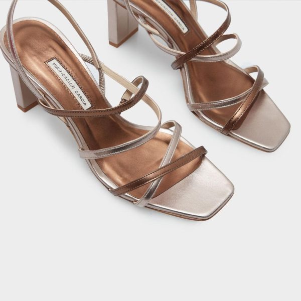 Purificación García Zapatos | Sandalia Napa Tiras Metalizado/bronce Mujer